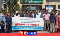 ভূঁইফোড় সাংবাদিক কৌশিক ও অধ্যক্ষ মোশারফ হোসেনের বিরুদ্ধে চিকিৎসকদের প্রতিবাদ ও মানববন্ধন