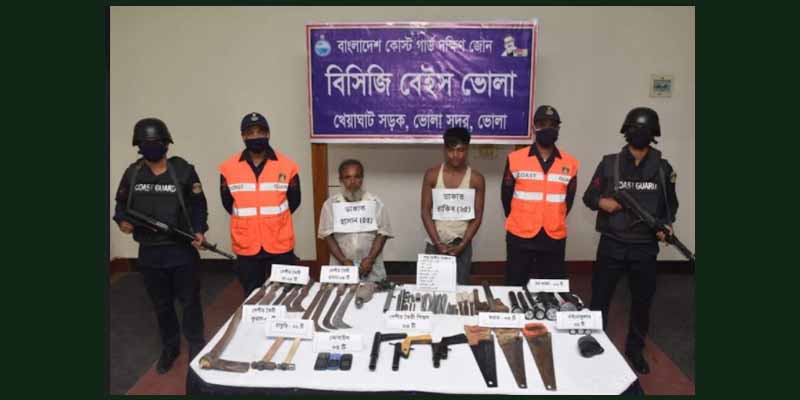 বোরহানউদ্দিনে বিপুল পরিমাণ দেশীয় অস্ত্রসহ দুই জলদস্যু আটক