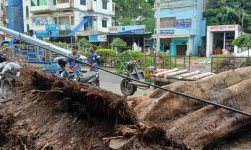 টানা বর্ষণে উপড়ে পড়ল ৩০ বছরের পুরনো গাছ