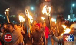 রাণীশংকৈলে হাদির হত্যাকাণ্ডের প্রতিবাদে মশাল মিছিল