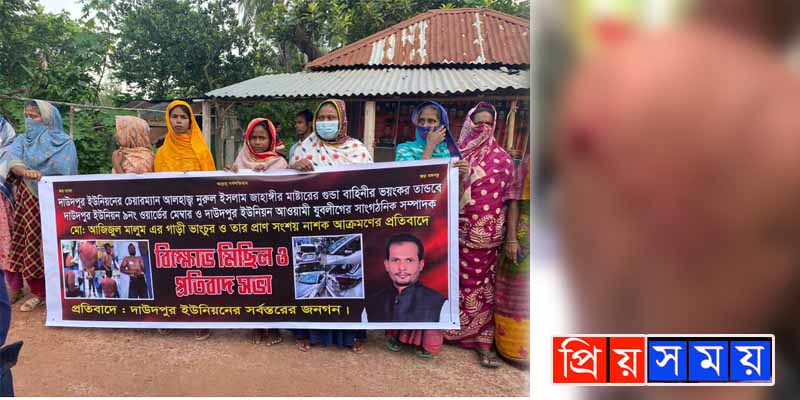 রূপগঞ্জে ইউপি সদস্যর উপর হামলার প্রতিবাদে মানববন্ধন ও বিক্ষোভ কর্মসূচি পালন