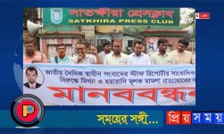 সাংবাদিকের বিরুদ্ধে মিথ্যা মামলা ও প্রাণনাশের হুমকির প্রতিবাদে সাতক্ষীরায় মানববন্ধন
