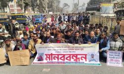 গাইবান্ধার সাঘাটায় ভূমিদস্যু ইউপি চেয়ারম্যান সুইট ও সহযোগিদের শাস্তির দাবিতে মানববন্ধন