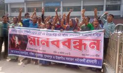 রানীশংকৈল হোসেনগাঁও ইউনিয়নে শ্মশান ঘাট দখলের প্রতিবাদে মানববন্ধন ও বিক্ষোভ